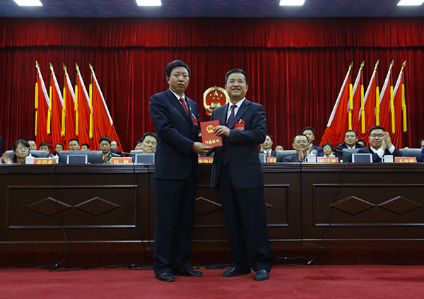 大会上,张华昆宣布当选人名单并为新当选的县人大常委会主任袁崇彦颁发当选证书。县人大常委会主任袁崇彦为新当选的县人民政府县长陆颖,县第十六届人大常委会副主任,县人民政府副县长,县人民法院院长、检察院检察长,县第十六届人大常委会委员颁发了当选证书。参会代表以热烈的掌声表示祝贺;新当选的国家机关领导人员面对国旗,向宪法庄严宣誓。