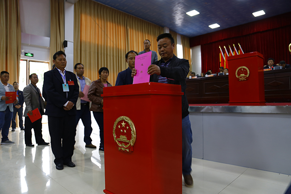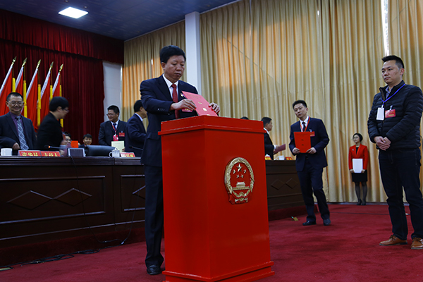 大会以无记名投票的方式进行选举。代表们填写选票后,依次走向投票箱投下了自己庄严的一票。