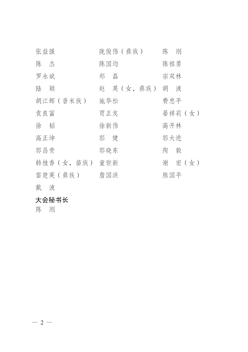 昭通市第五届人民代表大会第三次会议主席团和秘书长名单